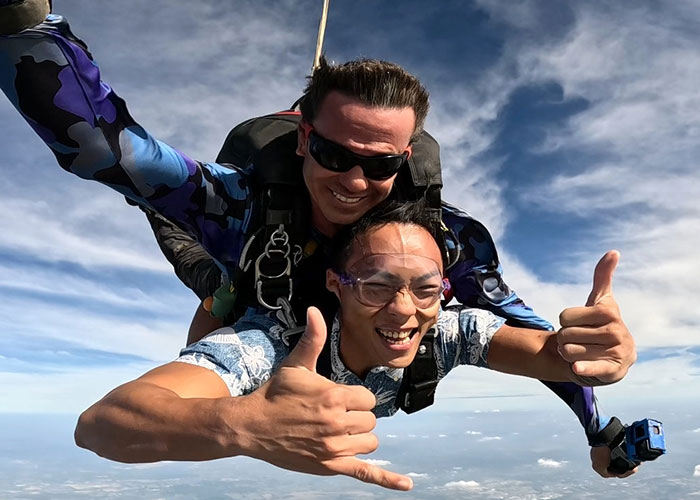 When your name appears on the manifest, you and your instructor will take a 20-minute scenic ride to a height of up to 13,000 feet, then freefall at 125 Mph for approximately 60 seconds, opening your parachute 5,000 feet above the ground.