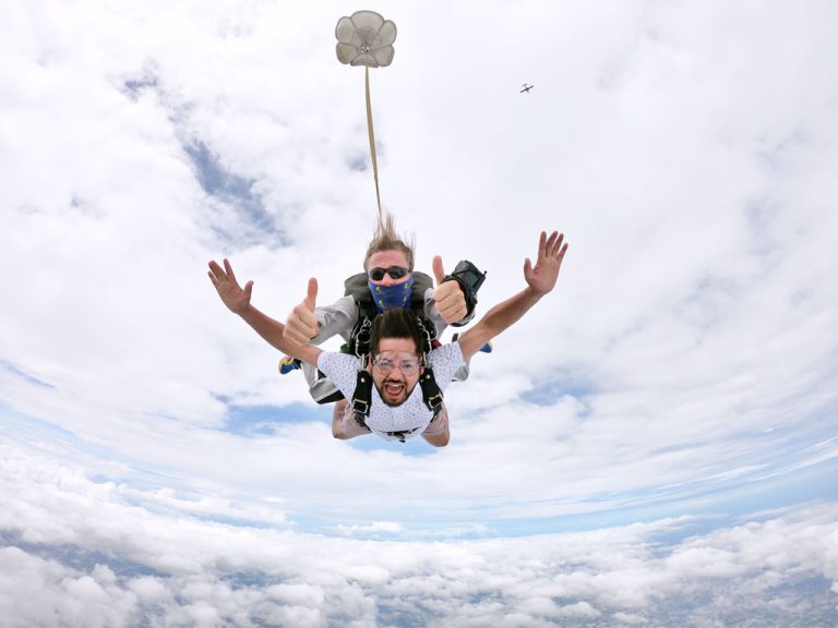 Now, if you’re looking for the easiest and safest way to make that giant leap, let us tell you about our tandem jumps. It’s like having a buddy by your side the whole way down! You’ll be securely harnessed to one of our experienced instructors so you can relax and enjoy the ride. Your instructor takes care of everything – from the exit to the freefall and even the parachute deployment and landing. All you need to do is soak in the adrenaline rush and the breathtaking views.